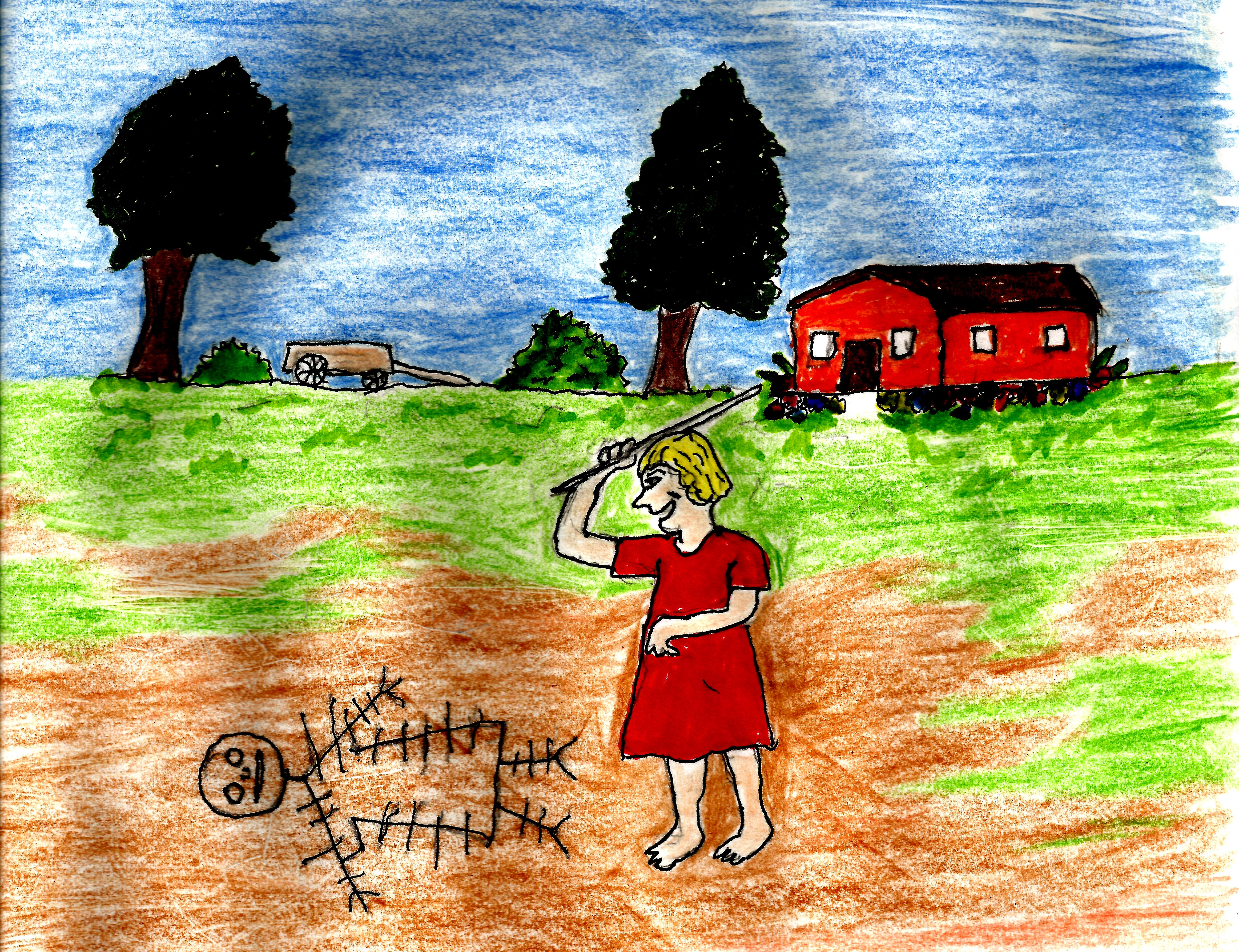 Possessed by fury, I drew a huge figure in the deep sand of the front yard, not fifty feet from the front porch. It never occurred to me that Mama was a perceptive woman, not easily amused by the antics of children, nor that things wouldn’t go well for me had she strolled by just then and found me beating a large stick woman drawn in the dirt. Enraged, I started at the top, beating Mama’s effigy, striping methodically down one side, even creating a carefully measured pattern on the bottom of the feet, before progressing up the other side, changing switches as I wore them out, taking care to replace them with big, strong switches, knowing how Mama favored them. Enjoying the combination of the rhythmic sound and the wave-like motion of the sand as I smacked, I immersed myself in the sensual experience, noting the fresh, dry scent as the sand mixed with the acrid scent of the broken switches. My mood changed from black to pure joyous enthusiasm as I was caught up in the experience. Seldom have I known such satisfaction. Standing back to admire my work in progress, I was suddenly horrified to see how obvious I had been. Mama could not have failed to understand, had she seen. I hurriedly grabbed a brushy top from a pine branch lying on the ground to brush away the evidence of my guilt, so I might live to sin another day. The deep experiences of my first real grief of Johnny’s loss, rage at Mama’s injustice, joy, and relief, one on the heels of the other made for a day of catharsis. Though it was years before I heard the word, its meaning was clear in my heart.