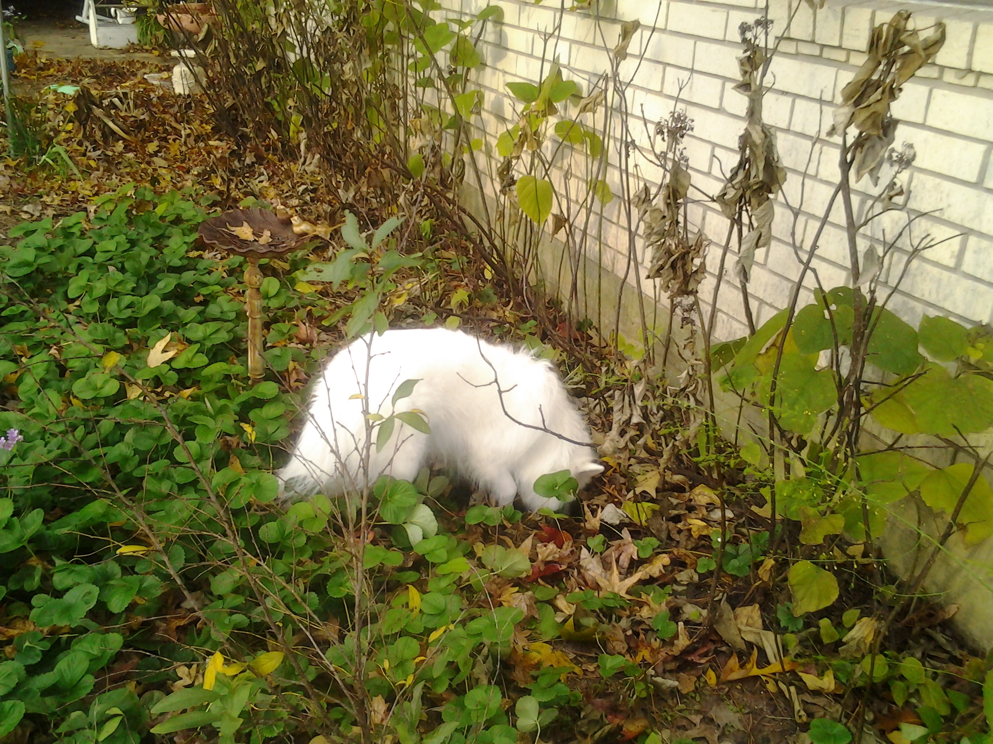 Buzzy came by a little more turkey skin than he needed Thanksgiving Day and took it out to his favorite burying place behind the rose arbor, where he has deposited countless biscuits and other treats that he didn’t need at the moment.