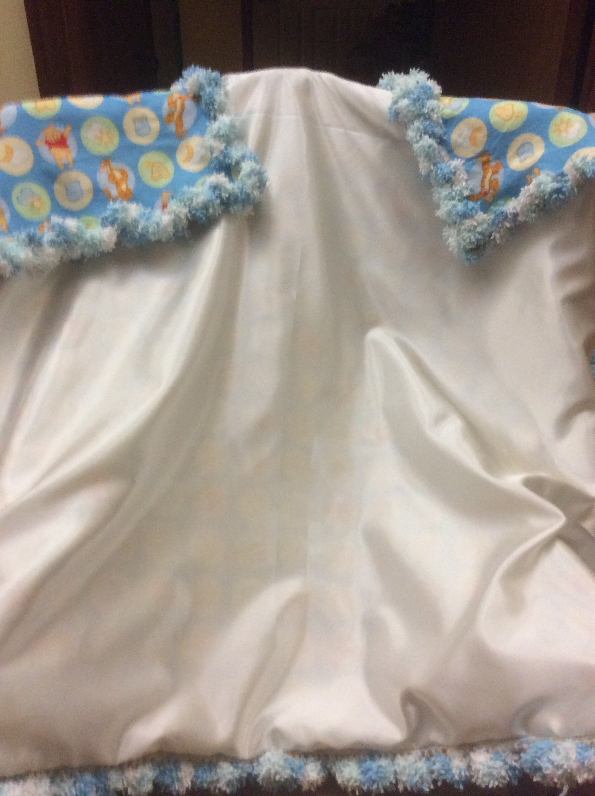 This is a 45 x 45 inch reversible infant blanket with a cozy flannel side and a soothing satin side, with a fluffy hand crocheted edge. I’ve made many of these for gifts. How would I price this for sale?