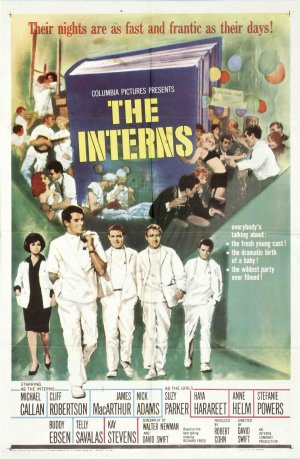 The Interns is a 1962 American drama film that starred Michael Callan and Cliff Robertson.[2] This film is a medical melodrama that presages many similar TV programs to follow. It centers on the personal and professional conflicts of young medical interns under the tutelage of senior surgeons, Telly Savalas and Buddy Ebsen. The film was followed by a 1964 sequel, The New Interns, and a 1970–1971 television medical drama series, The Interns, that was based on the films. The Interns was directed by David Swift.[2]