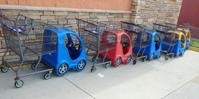Finally, we were done. Over her protests, I got her zipped in her hooded jacket and wheeled her toward the parking lot, clasping her toy. I would have enjoyed waiting for icy rain to stop, but I wanted to get her out of the store. I struggled to steer the cumbersome buggy across the bumpy parking lot. I breathed a sigh of relief as I opened the car door and buckled her in the car seat. She was happily unwrapping her lollipop as a woman with a small boy parked next to us. Remembering how anxious my little one was to find the fancy cart, I asked the woman. “Ma’am, do you want this car buggy for your little boy?”