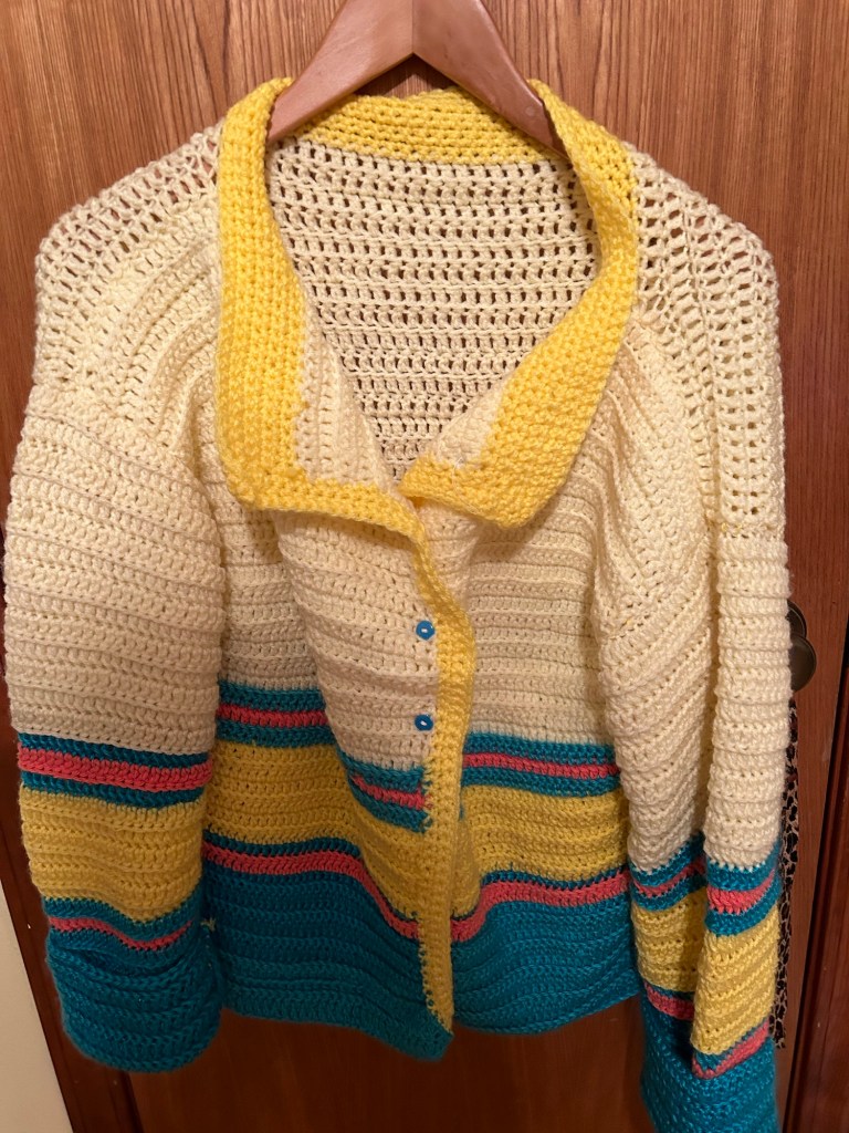 img_1577I crocheted this cute little hoodie over the weekend.  It cost about twenty dollars, only about one-third more than I could have bought it for.  Now, that’s a deal, isn’t it?  Oh yes, the bottom edges in front do line up.  I am just a careless photographer.
