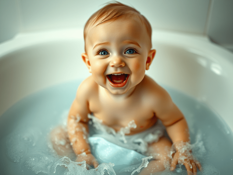 “Thank goodness, no poop!” laughed Lynn. It’s my lucky day. I wouldn’t want to clean that up. She sat Connie in the tub and started running the water. Connie tried to stand and Lynn handed her a wash cloth. The baby sat and started splashing. Water went everywhere. She was so cute Lou couldn’t help laughing. “Lou, can you watch her while I get the diaper? Don’t let her stand up. She’ll fall.”