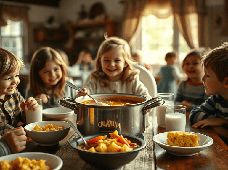Aunt Kat put a steaming pot of vegetable soup with big chunks of beef on the table. The crisp golden cornbread was dripping with butter. Though she’d never even tried cornbread before, she wanted it now. When she smelled the tempting aroma, Lou was suddenly starving. The family gathered and fell to eating after Lynn said grace.