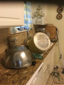 Eventually, I finished them up in the washer.  Meanwhile, I’d made a real mess of the kitchen.  The sink was full of pots, the stove a sloppy mess, and the floor tracked up.  It didn’t look like I’d done a deep cleaning just yesterday.  It only took an hour to get back to where it was.  My back still hurts.