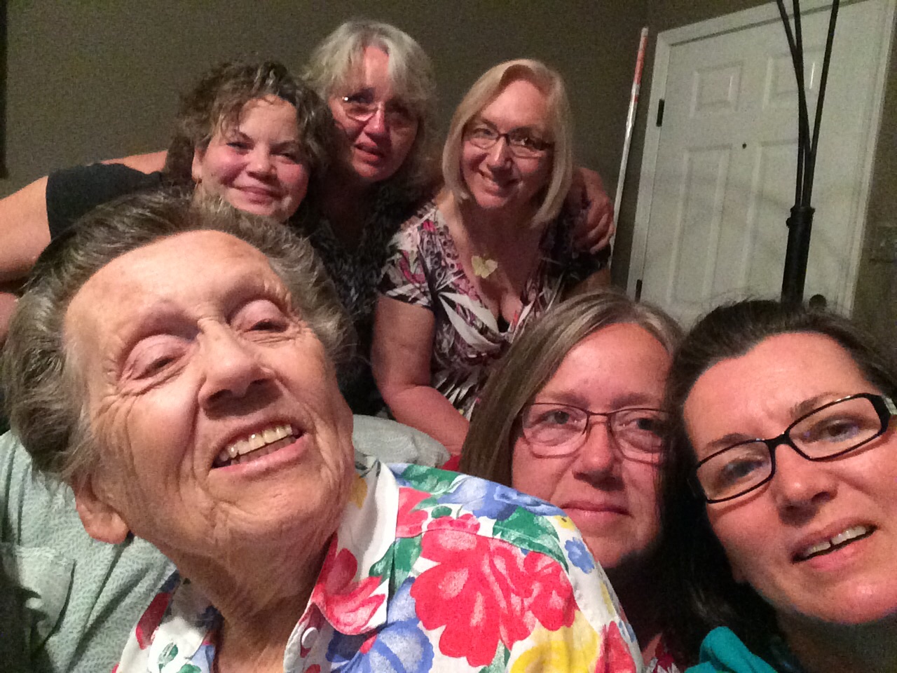I am very fortunate to come from a close family with three sisters and one brother. The girls get together periodically for a girl’s night out. For some reason, my brother, bows out on our girl’s night out. We gathered this time in honor of Mother’s birthday and Mother’s Day. In the second picture back left is me , 2nd daughter, back right, Phyllis eldest daughter, bottom left Mother, bottom center, Connie 4th daughter, bottom right Marilyn the youngest. In the third picture, Mother is reacting to being kissed by Marilyn’s little dog.My brother Bill is pictured with my Mother in the top picture. In the fourth picture, a dear family friend, Elaine, joins us. We had a wonderful night, laughed till we were exhausted, and enjoyed every minute together.