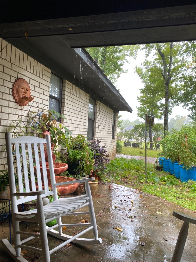 As I sit on my patio, I await the approaching storm. Everything I can control is in readiness with food cooked, water at hand, coffee in the thermos, flashlights with fresh batteries within reach, and phones charged. I’ve talked to my family. The children live hours south where the storm has already passed. I thank God for that.