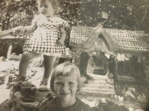 This photo was taken on that visit. I was eighteen months old, and my sister four. This was taken at a park. Later that that, we were allowed to take our shoes off and wade in a park pool I cut my foot on a coke bottle, not badly, just enough to make me scream bloody murder.