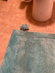What could these two pictures possibly have in common? Buzzy is adorable, but he does have a little flaw. He feels compelled to scratch soft fabrics. My new bathroom rug is quickly balding. I have to groom it every time he gets in there. He gives carefull attention to several other rugs, but this one must be substandard. I do tell him,”No!” He is pretty forgiving, just gives me a hurt look and walks away. I’ve thought of flapping him with a hand towel, but that seems a little extreme for a ten-year-old gentleman who’s never endured a flap. I guess I need to buy a better rug or keep the door closed.